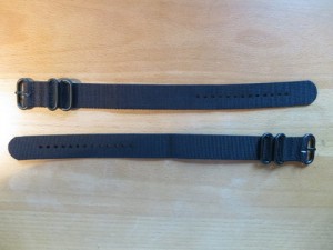 Der Adapter passt wie gesagt für die Größen 22 und 24mm. Ich habe mich dann für ein Zulu-Band in 22mm Größe entschieden. Damit lässt sich das Band noch gut durchziehen, sitzt aber auch seitlich nicht allzu locker. Eine größere Auswahl an Zulu-Bändern bei erstaunlich schneller Lieferung hat z.B. der Onlineshop Miros Time.